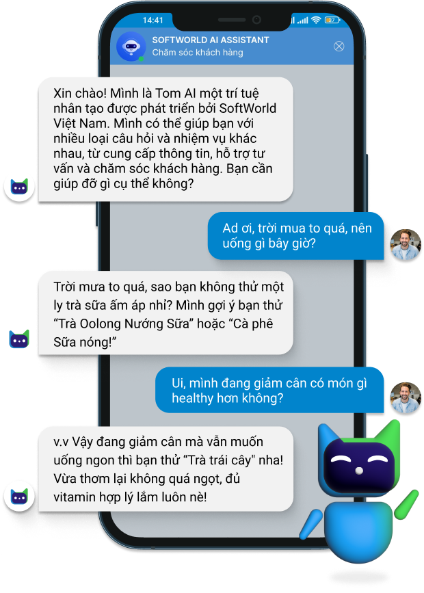 - Chuyển đổi giữa TomAI và tư vấn viên trong cùng 1 đoạn hội thoại để đảm bảo trải nghiệm tốt nhất cho khách hàng